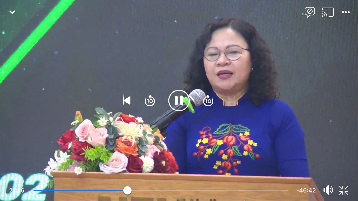Bà Ngô Thị Minh, Thứ trưởng Bộ Giáo dục và Đào tạo phát biểu chúc mừng cuộc thi thành công - Ảnh chụp từ Clip