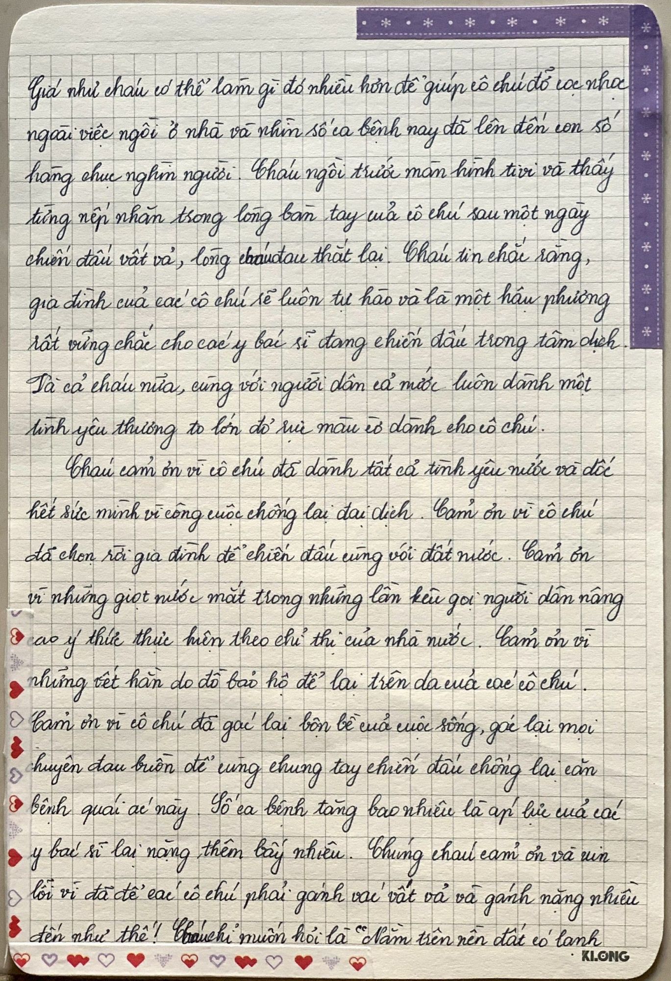 Bằng tấm lòng của mình các em học sinh đã đóng góp một phần tinh thần, cùng lời cám ơn đặc biệt đến các cô, các chú, anh, chị, các "chiến sĩ" tuyến đầu phòng chống dịch bệnh COVID-19 thông qua Chương trình: Lá thư tay - Thay lời cám ơn.